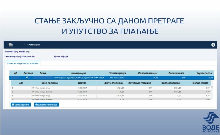 - Електронски увид у стање на рачуну накнаде за одводњавање